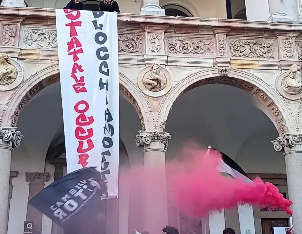 Questa mattina è stata occupata la Statale di Milano dove gli attivisti di Cambiare rotta hanno bloccato l’ingresso e tenuto un’assemblea nell’aula 211 a sostegno della Flotilla. Striscioni appesi furori con la scritta ‘Statale occupata, blocchiamo tutto’. Anche Bicocca e Politecnico si preparano alla manifestazione delle 18 in piazzale Loreto e allo sciopero generale di domani.