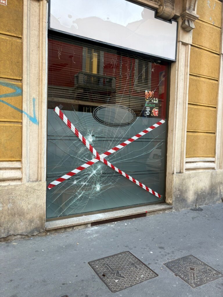 L’episodio ha destato forte preoccupazione tra i residenti della zona, dove negli ultimi mesi sono stati segnalati altri episodi di violenza e vandalismo tra gruppi di giovani. Di seguito alcune foto delle vetrine intorno alla pizza.