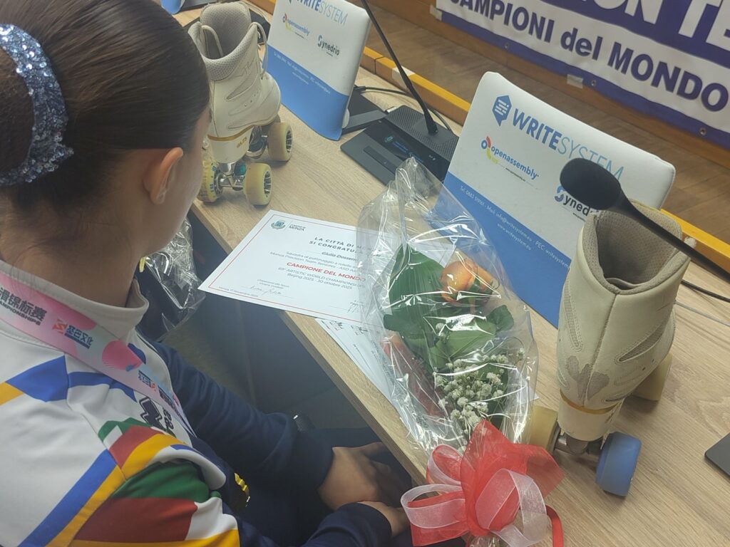 Il Comune di Monza ieri ha dedicato una cerimonia al Monza Precision Team, la squadra di pattinaggio artistico dell’Astro Roller Skating Monza recentemente tornata vittoriosa dai Campionati Mondiali 2025 di Pechino. Il gruppo, composto da 17 atlete e un atleta, aveva già conquistato i titoli nazionale ed europeo.
