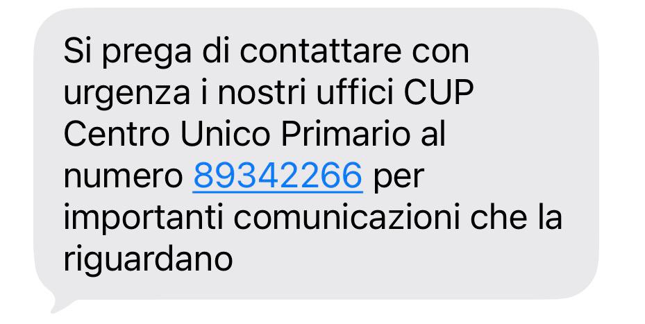 Circolano in questi giorni messaggi sms che invitano a ‘contattare con urgenza i nostri uffici Cup’ per presunte comunicazioni sanitarie. Si tratta di un tentativo di truffa, segnalato anche da Regione Lombardia, che utilizza numeri a pagamento per indurre gli utenti a richiamare.