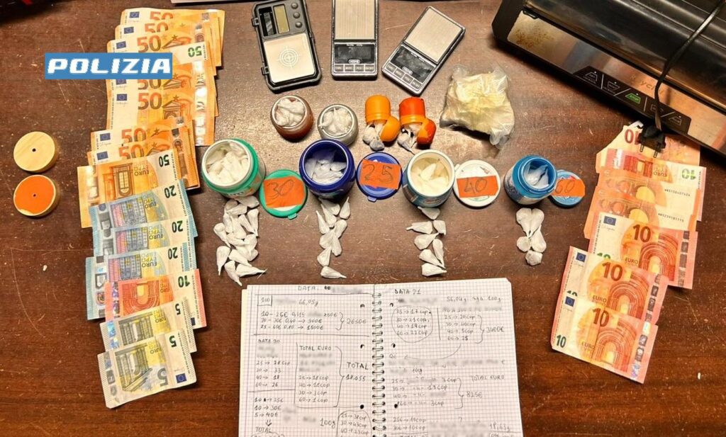 La successiva perquisizione dell’auto, poi sequestrata, ha permesso di rinvenire tre telefoni cellulari e quattro contenitori nascosti all’interno della plancia, azionabile tramite un sottile filo metallico. All’interno erano custodite 54 dosi di cocaina per un peso complessivo di circa 28 grammi. Le verifiche sono state estese anche all’abitazione collegata ai due giovani, dove sono stati trovati ulteriori quattro contenitori con circa 190 grammi di cocaina, tre bilancini elettronici, una termosaldatrice, materiale per il confezionamento delle dosi, 60 euro in contanti e un’agenda con annotazioni relative a grammi ed importi ritenute riconducibili all’attività di spaccio.