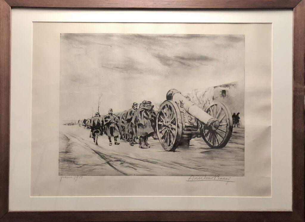 La mostra, che ha già attirato 4mila visitatori, è stata prorogata fino al 3 maggio. L’intento è quello di rendere omaggio all’artista attraverso l’esposizione delle sue opere ma anche di documenti inediti e lettere provenienti dal fondo Bucci del museo etnologico di Monza. Tra le novità vi è sicuramente l’esposizione di una nuova opera dal titolo Il cannone, datata 1915, e donata dalla famiglia Bellini di Monza. Si tratta di un quadro che rappresenta la prima guerra mondiale: al centro un cannone usato dalle truppe francesi contro i tedeschi nel 1915. Si tratta di una ricostruzione storica, accompagnata anche da una componente biografica. Infatti in quel periodo Bucci viveva ancora a Parigi. Due opere che invece si trovano lì esposte, Autoritratto e Pont Saint Michel verranno esposte al Mart, il museo di arte moderna e contemporanea di Trento e Rovereto.